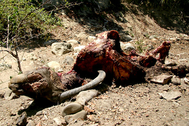 Mens vi er der har en ung hann kommet frem for å forsyne seg av restene. Med guiden på vakt får jeg anledning til å snike meg opp en meter unna i en National Geographic-fotografs våte drøm. Varanen gir blaffen mens han river løs kjøttfiller fra knoklene og jeg skyter mens lukten av død nå begynner å gjøre seg bemerket også i våre menneske-neser.